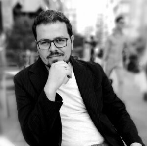 Figura e mendimtarit me laps në dorë, libër, ose letra të shkruara—simbolizim i krijimtarisë.