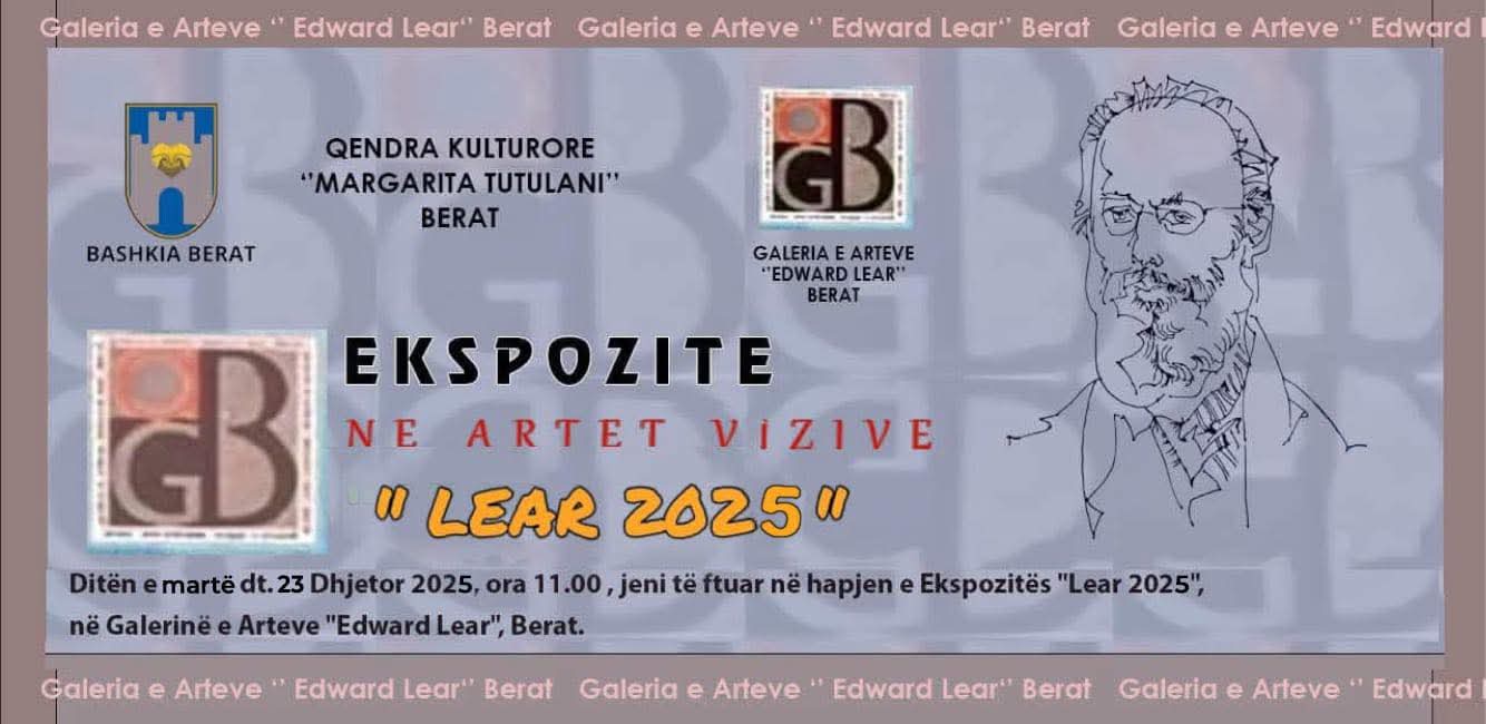 Në Galerinë e Arteve “Edward Lear”, hapet ekspozita tradicionale e fundvitit “Lear ’25”, me pjesëmarrjen e artistëve nga Berati, Tirana, Durrësi, Shkodra, Elbasani dhe Vlora.