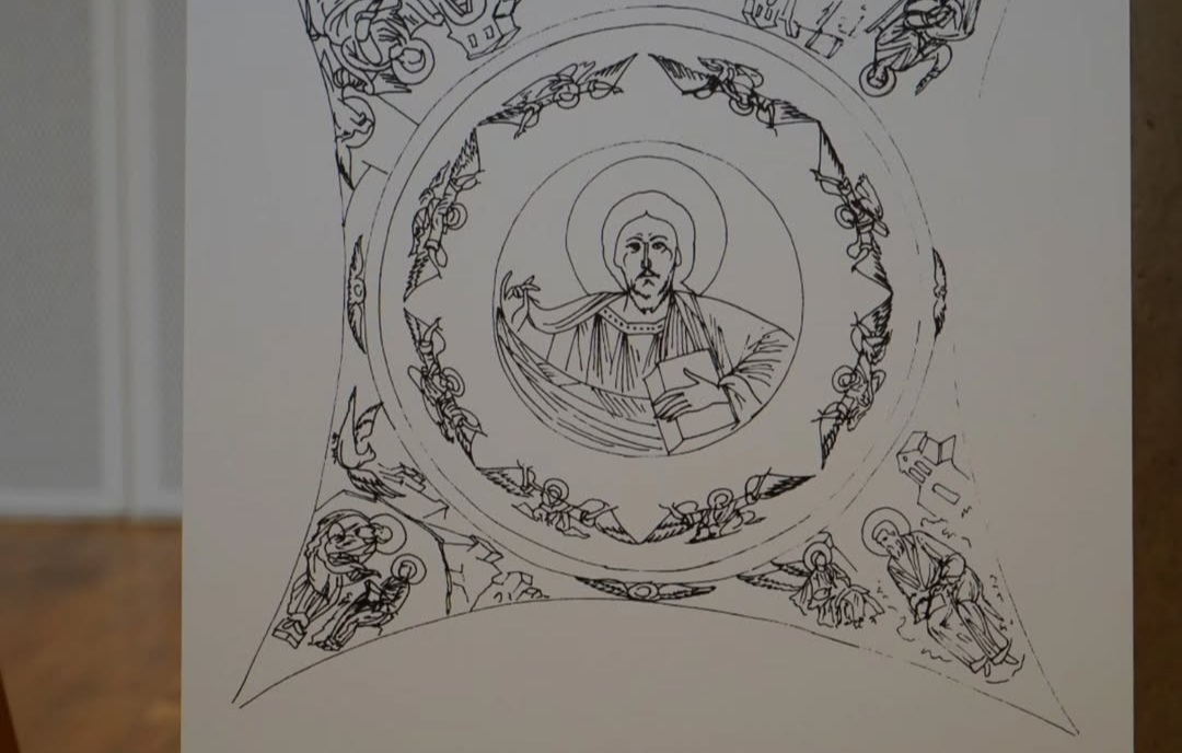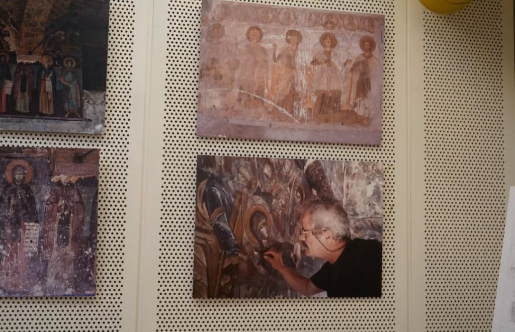 Ai ka sjellë edhe disa vizatime të cilat kryhen para restaurimit të një afresku për të nxjerrë më mirë në pah dëmet dhe ndërhyrjet e nevojshme.