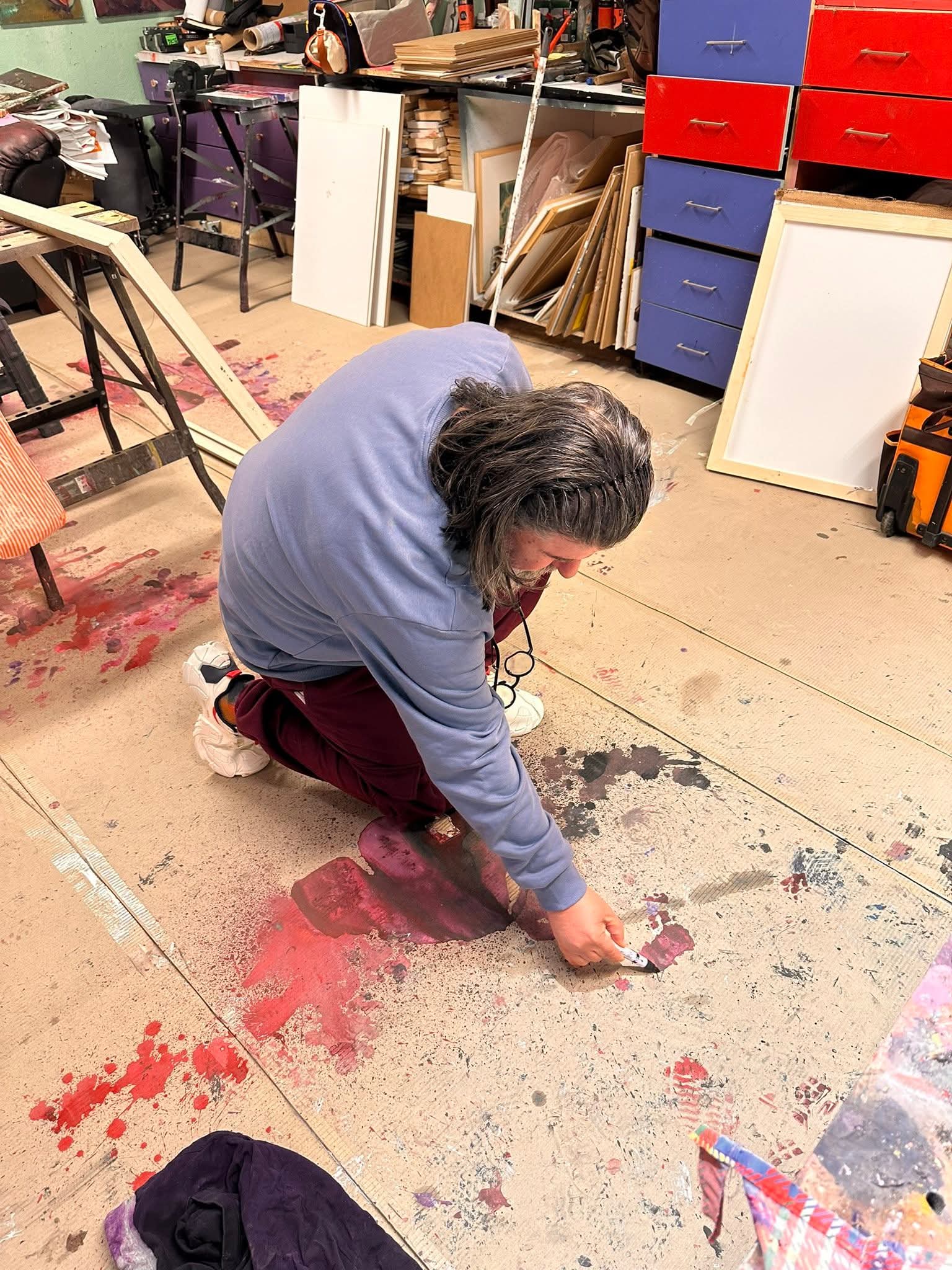 Pozicionimi i figurave në hapësirë është kryesisht frontal ose gjysmë-profil, duke i ekspozuar ato drejtpërdrejt ndaj shikimit të spektatorit. Mungesa e një sfondi realist dhe zhvendosja e figurave në fusha kromatike të paspecifikuara i japin atyre një cilësi të pezulluar, si në një hapësirë mendore. Ky pezullim krijon një distancë ontologjike midis figurës dhe botës reale, duke e transformuar trupin në shenjë të gjendjes së brendshme. Trajtimi hapësinor mund të krahasohet me qasjet e Roberto Matta, ku figura dhe ambienti formojnë një fushë energjetike të përbashkët, ndërsa fragmentimi i fytyrës dhe deformimet figurative tek George Condo rikrijojnë tensionin midis identitetit dhe karikaturës, duke sfiduar stabilitetin ontologjik të figurës në mënyrë të ngjashme me eksperimentet e Max Ernst.