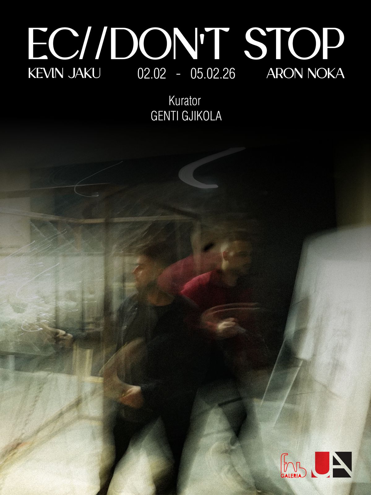 Kjo ekspozitë e parë e Aron Nokës dhe Kevin Jakut vjen si një stacion i parë dhe një moment tranzicioni në praktikat e tyre respektive. Puna e secilit merr në shqyrtim një terren bashkëko-hor shqiptar dhe global, ku imazhi, nënshtresat e tij, konteksti dhe struktura prodhojnë tension si përvojë personale dhe kolektive.
