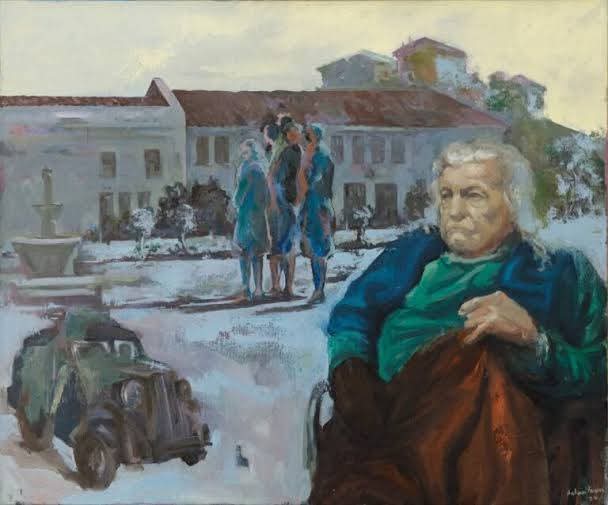 Elementet arkitekturore, peizazhi dhe objektet simbolike si; (automjetet e vjetra, apo strukturat monumentale) funksionojnë si shenja të kujtesës kolektive. Vendosja e figurave monumentale në plan të parë, në dialog me skena më të vogla në sfond, krijon një dialektikë vizuale mes së shkuarës dhe së tashmes, ku e para shfaqet si prani reflektuese dhe vëzhguese.